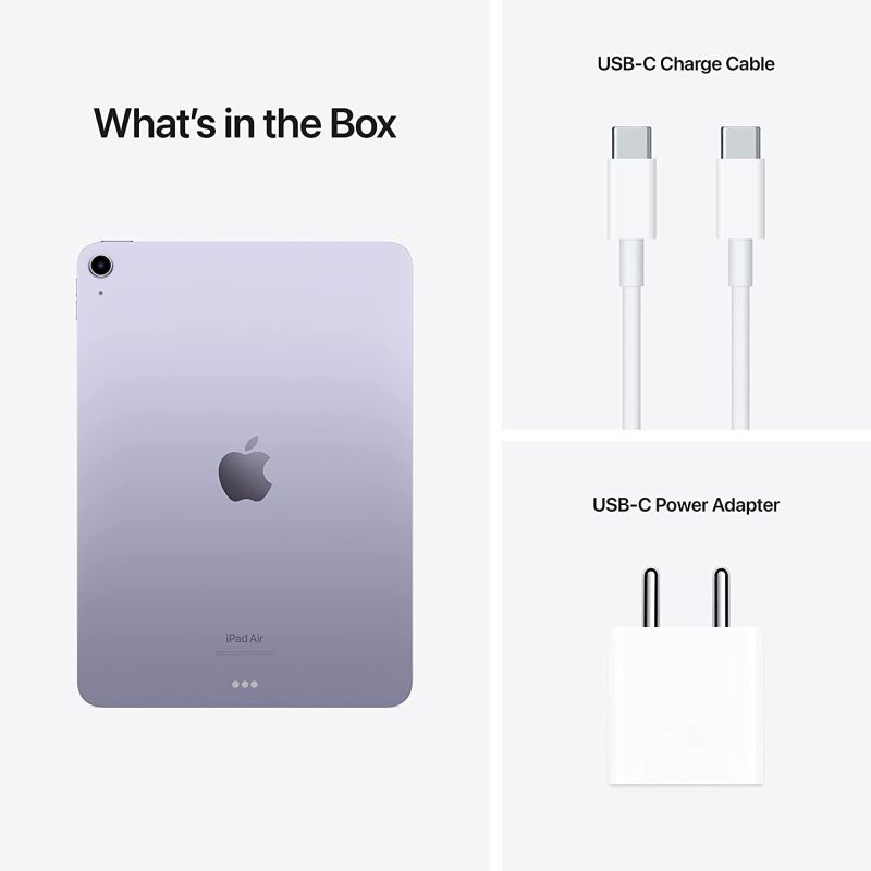• In the Box: iPad Air, USB-C Charge Cable (1 meter), 20W USB-C Power Adapter