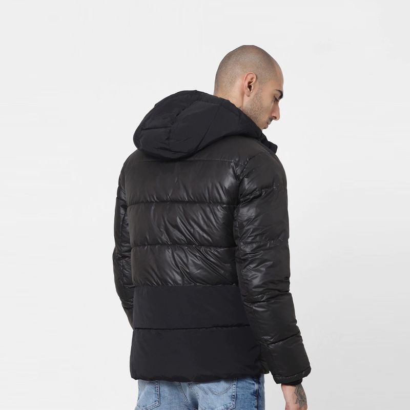 جاكيت مبطن باللون الأسود مع سحاب ، مزود بغطاء رأس ، 2 جيب ، إغلاق بسحاب ، أكمام طويلة ، حافة مستقيمة وبطانة من البوليستر