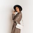 المرأة براون الصلبة الخط المفتوح معطف خندق الخط الطويل مع حزام