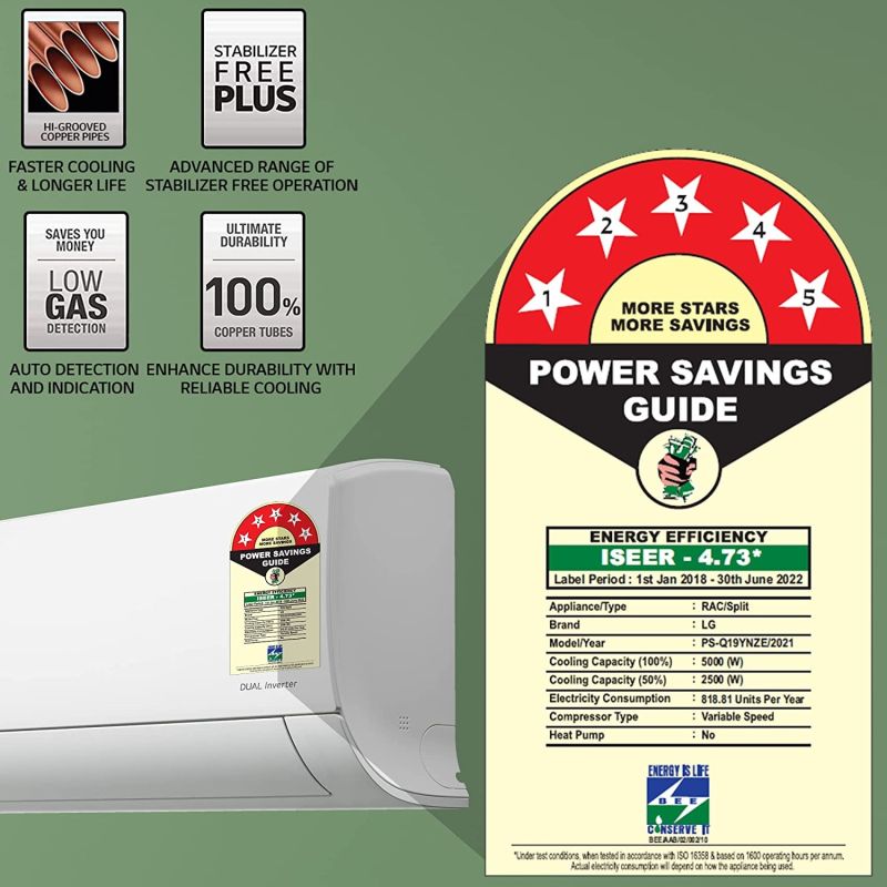 Energy Rating: 5 Star - Best in class efficiency | Annual Energy Consumption: 818.81 Units per year | ISEER Value: 4.73 (Please Refer Energy Label On Product Page Or Contact Brand For More Details) . The star rating is as per BEE guidelines on or before 30th June 2022.