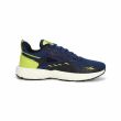 A pair of navy blue shoes, has regular Styling, lace-ups detail