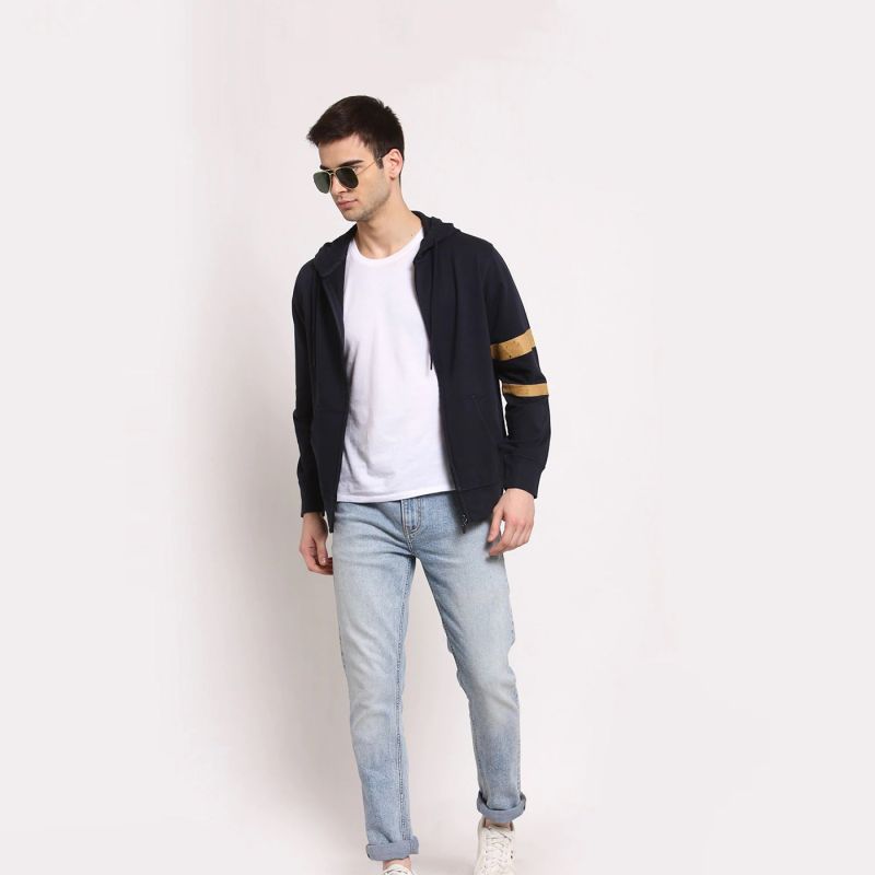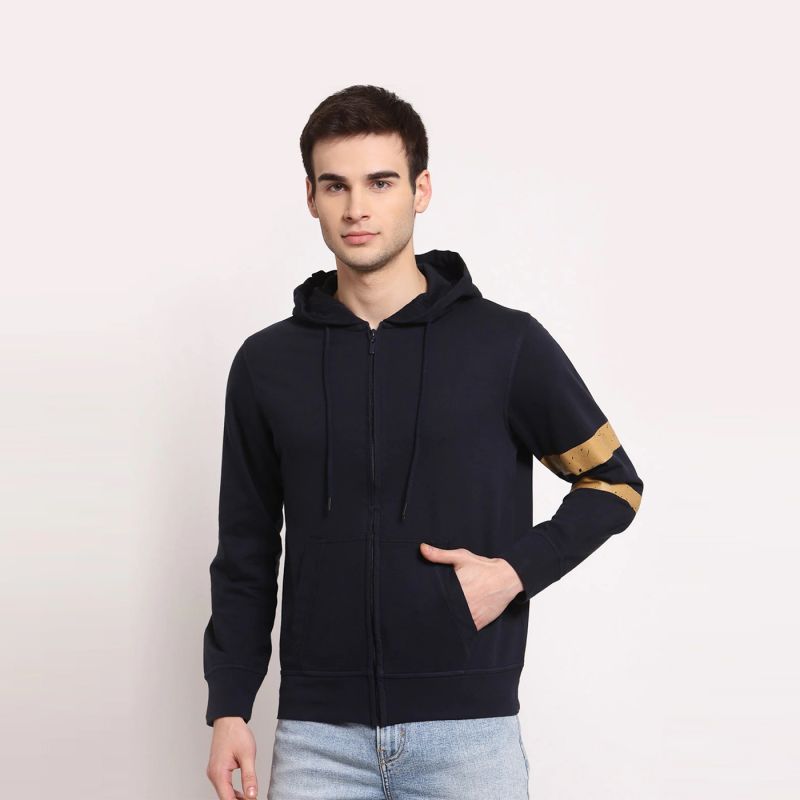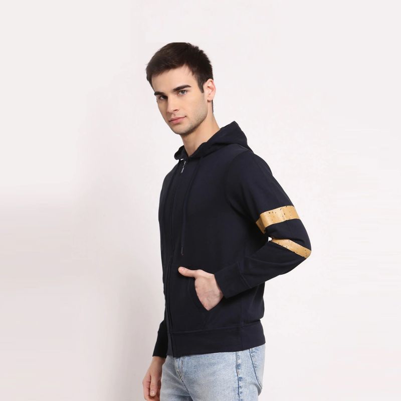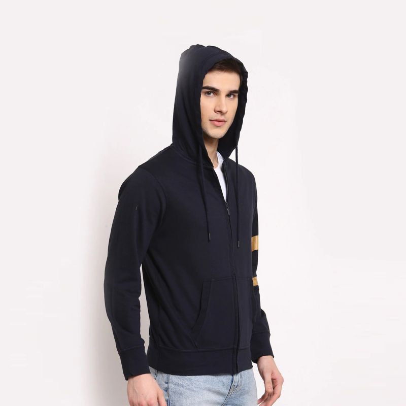 Men Solid Full Sleeves Hoodie Jacket