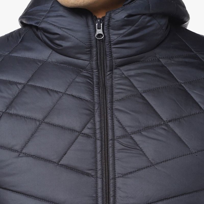الأزرق الداكن الهندسي الذاتي تصميم سترة مبطنة ، لديه غطاء رأس ، جيوب 2 ، لديه إغلاق الرمز البريدي ، أكمام طويلة ، حاشية مستقيمة ، بطانة من البوليستر.