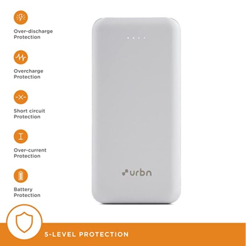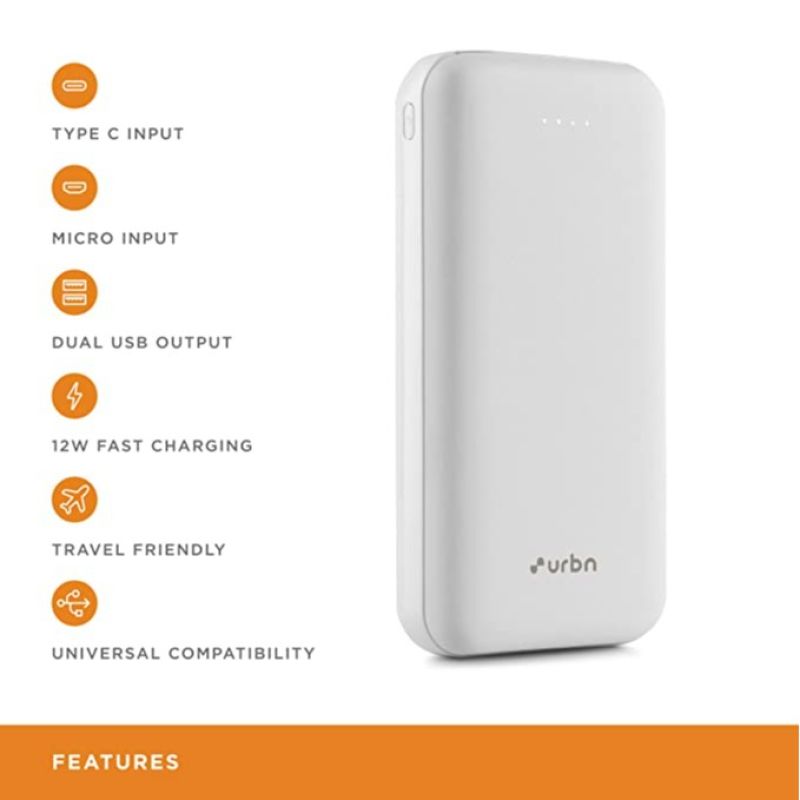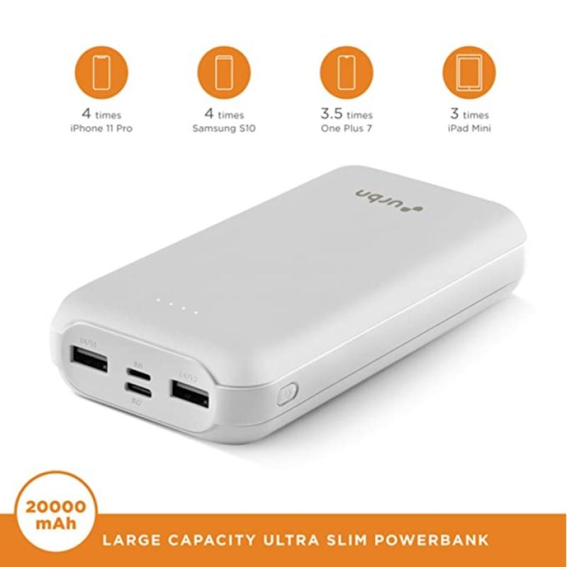 URBN 20000 مللي أمبير بطارية احتياطية ليثيوم بوليمر UPR204 مع شحن سريع 12 وات (أبيض)