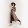 المرأة براون الصلبة الخط المفتوح معطف خندق الخط الطويل مع حزام