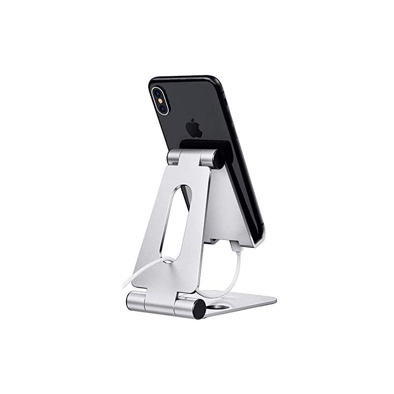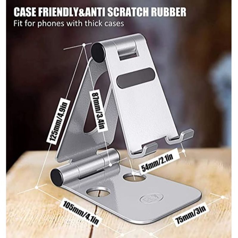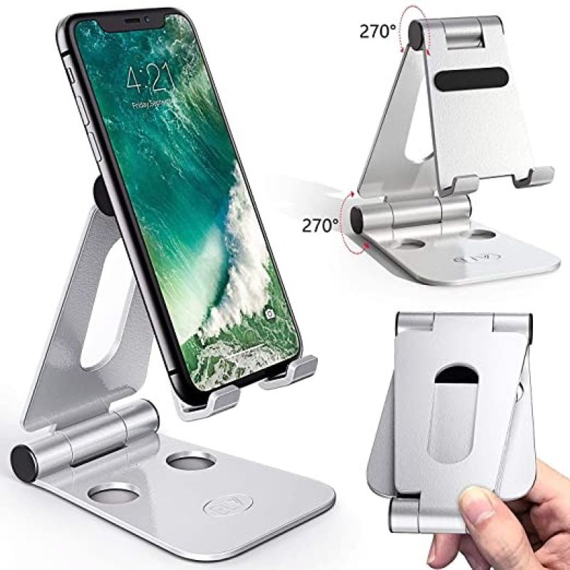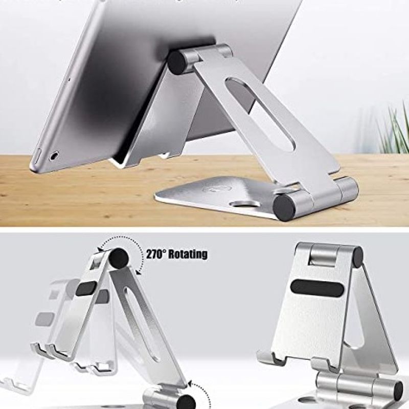 ELV Aluminum Adjustable Mobile Phone Foldable Holder Stand Dock Mount for All Smartphones, Tabs, Kindle, iPad (Moonlight Silver)