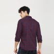 Maroon and Navy Blue checked casual shirt, has a spread collar, long sleeves, button placket, curved hem, and 1 patch pocket.