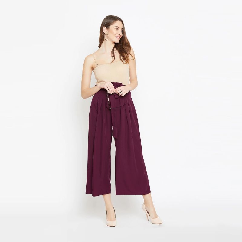 Women Paper-Bag Waist Culottes with Fabric Belt