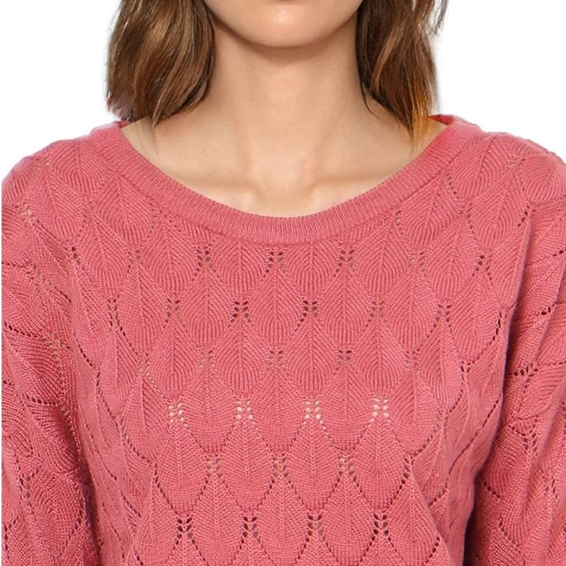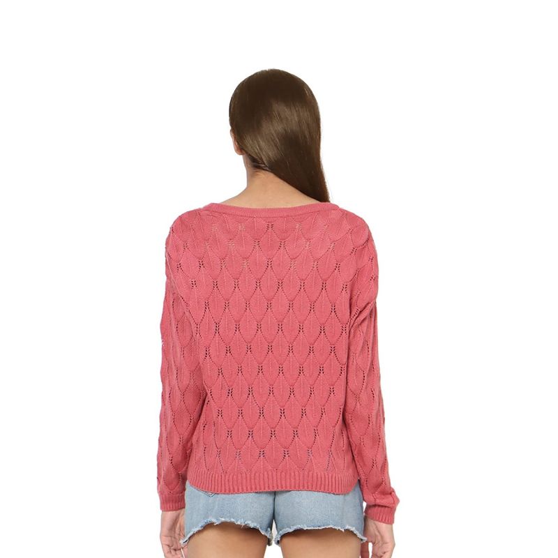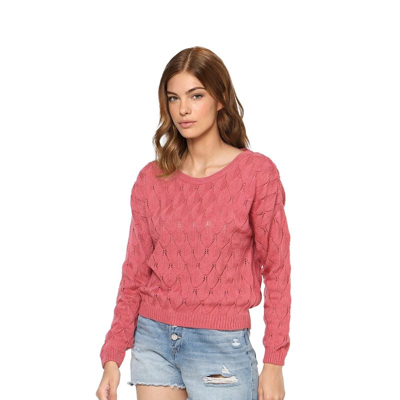 Pink self design pullover ,has a round neck, na pockets, long sleeves, ribbed hem