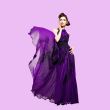 Purple solid maxi dress, has a V-neck, concealed zip closure, an attached lining, and flared hem